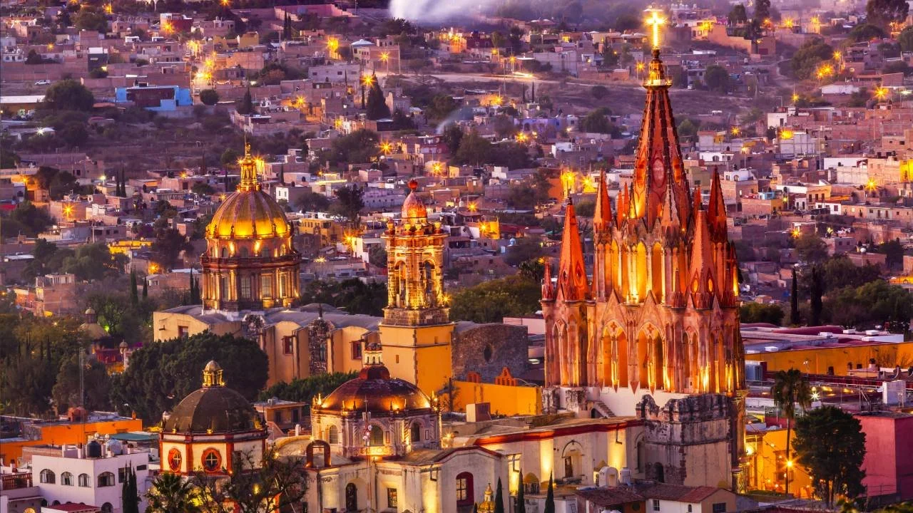 San Miguel de Allende, una ciudad de la época colonial en la zona alta central de México, es conocida por su arquitectura barroca española, su activa escena artística y sus festivales culturales. En el centro histórico de adoquines de la ciudad, se encuentra la Parroquia de San Miguel Arcángel, de estilo neogótico, cuyas espectaculares torres rosas se alzan por sobre la plaza principal, El Jardín. Cerca se encuentra la iglesia del Templo de San Francisco con una fachada churrigueresca del siglo XVIII.